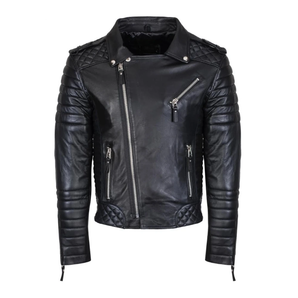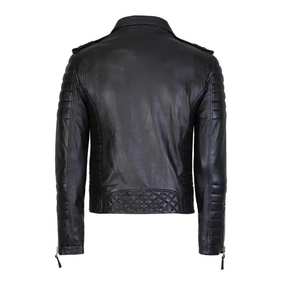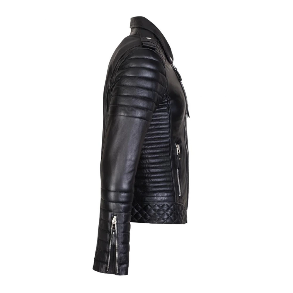 Men’s Black Asymmetrical Biker Style Quilted Leather Jacket
